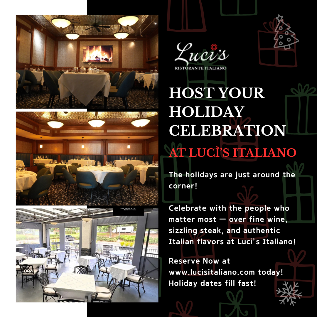 Whether it’s an intimate family dinner or a festive company celebration, Lucì’s offers the perfect setting — featuring our private Toscana and Roma Rooms, and a cozy patio for alfresco gatherings.